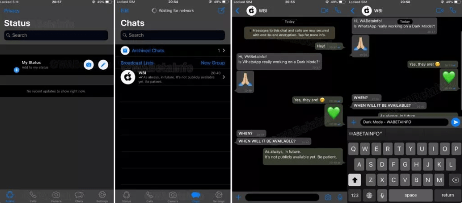 So gerne wir alle online sind, wollen wir manchmal auch einfach abschalten. Diesem Bedürfnis kommt WhatsApp mit zwei neuen Funktionen nach: Mit dem sogenannten „Dark Mode“ können Nutzer den Hintergrund – wie bereits in vielen anderen Apps – schwarz schalten und somit Akku und Augen schonen. Noch lässt das Update auf sich warten, aber schon jetzt kann der Hintergrund im Chat auf eine dunkle Farbe gestellt werden. Ob der Modus wirklich augenfreundlicher ist, ist sicher bei jedem individuell. Da hilft nur ausprobieren! Als zweite Neuerung führt WhatsApp den Urlaubsmodus ein. Wer von einer Gruppe eine Weile nichts hören will oder im Urlaub nicht von Business-Chats gestört werden möchte, kann einfach den Zeitraum seines Urlaubs bei WhatsApp eingeben. Die Nachrichten sind im Urlaubsmodus stumm geschaltet, werden also nicht angezeigt und landen automatisch im Archiv.