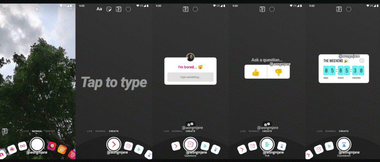 Aktuell testet Instagram ein komplett neues User Interface für seine Stories-Section. Bislang handelt es sich nur um eine Testversion, die wenige Nutzer betrifft. Sie enthält nicht mehr die neun Menüoptionen „Text“, „Musik“, „Live“, „Normal“, „Boomerang“, „Superzoom“, „Fokus“, „Rewind“ und „Freihändig“, sondern nur noch drei Oberpunkte. Dabei handelt es sich um die Optionen „Live“, „Normal“ und „Create“. Der Punkt „Normal“ enthält dabei Filter und Anwendungen wie Superzoom und Boomerang. Unter der neuen Option „Create“ sind die Sticker für Fragen, Umfragen und Countdown zu finden. Bis jetzt lässt sich jedoch noch nicht sagen, ob es die neue UI bis zu einer offiziellen Veröffentlichung schafft.