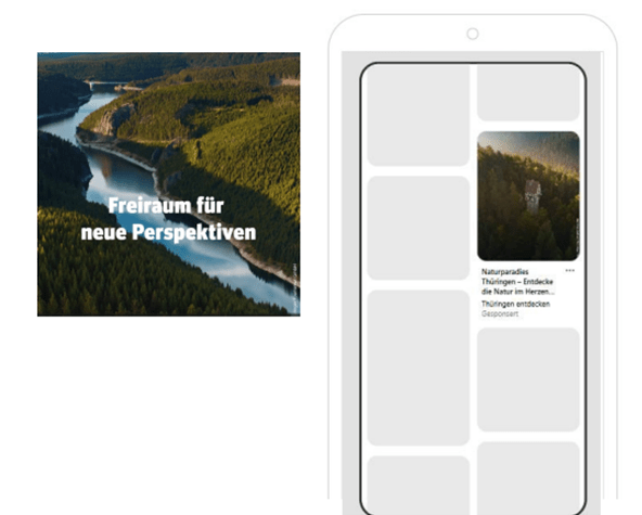 Pinterest war dabei kein Zufall, sondern strategische Wahl. Die Zielgruppe – kulturinteressiert, bildaffin und digital unterwegs – sucht gezielt nach Inspirationen für Reisen mit Tiefe. Unser Ziel war es, sowohl das emotionale Thema rund um Freiheit und Aufbruch visuell greifbar zu machen als auch die Markenbekanntheit von „Thüringen entdecken“ zu stärken.