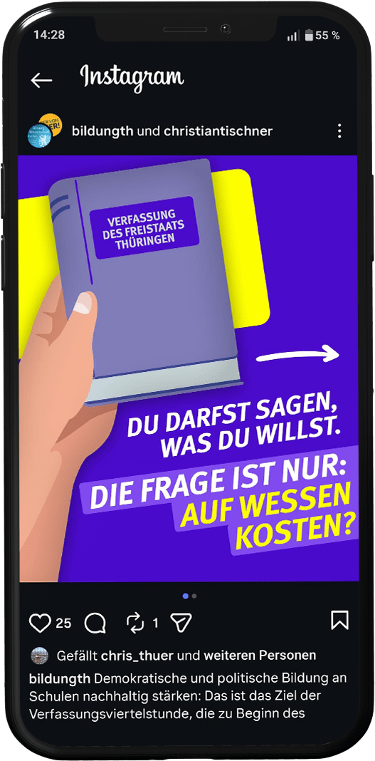Auch vor seiner Umbenennung von „Thüringer Ministerium für Bildung, Jugend und Sport“ (TMBJS) zu „Thüringer Ministerium für Bildung, Wissenschaft und Kultur“ (TMBWK) unterstützten wir das Ministerium bei Social-Media-Kommunikation.